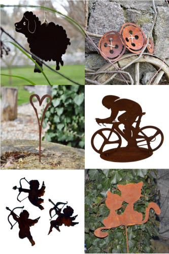 Nejen přirozeně, v přírodním odstínu a velmi dekorativně působí dekorace z kovu, které ne klasickou cestou, ale speciální technologií získávají svou rezavou patinu. Čím dál tím populárnější zahradní dekorace z rezavého kovu si konečně nachází místo i na našich zahradách a okenních parapetech. Neotřelé kovové zápichy na bylinky, určené do květináčů, truhlíků a záhonů, vypadají skvěle i s proutěnými výrobky. Ty odstíny hnědé se prostě přitahují. |