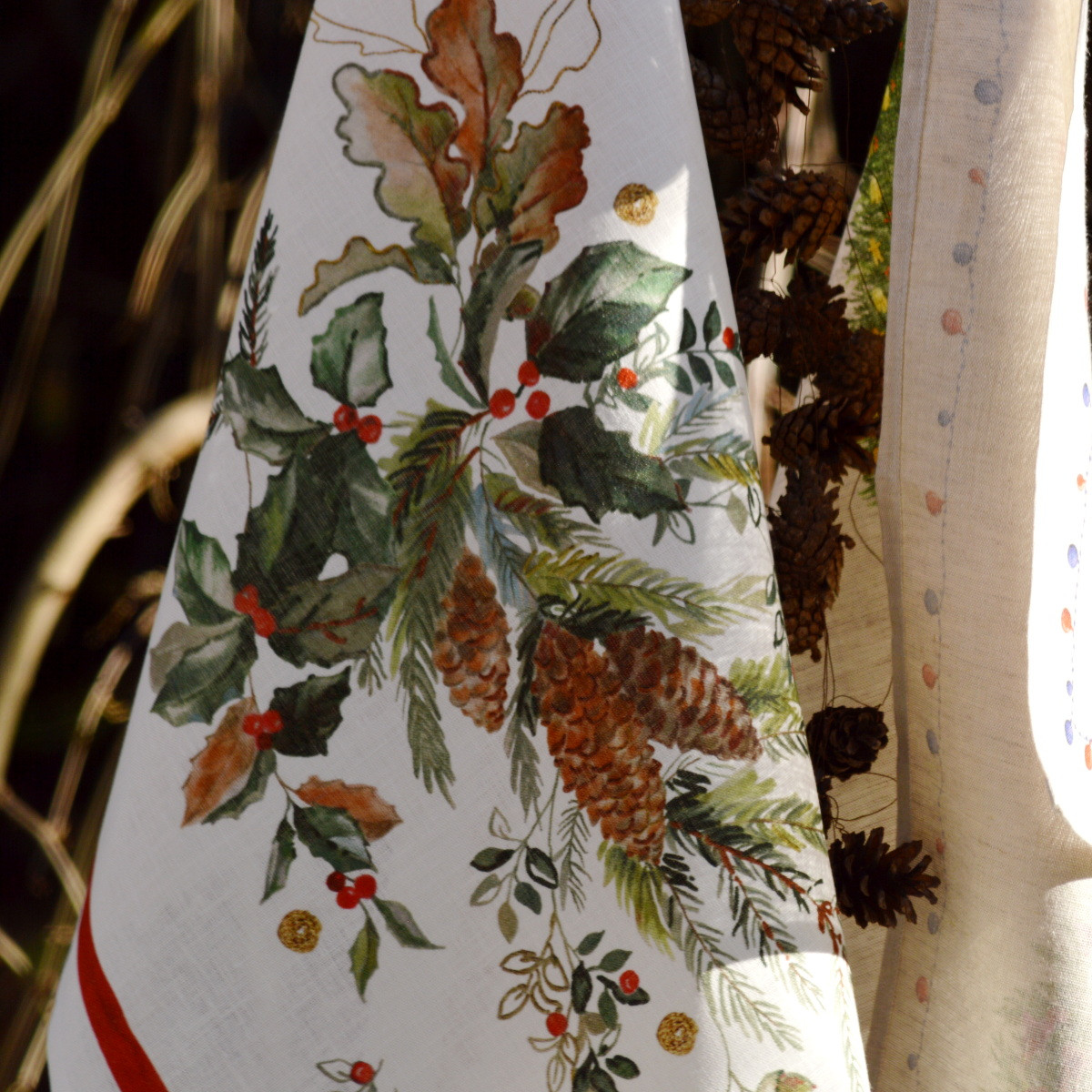 Kuchyňská utěrka šišky vánoční s podkladovou krémovou barvou ze 100% lnu. Rozměr 50 x 70 cm. Praní na 40°C. Elegantní lněné utěrky nejsou jen elegantním doplňkem pro každodenní použití, ale i malým dárkem, který budete moci neustále obdivovat. Novinka 2025.