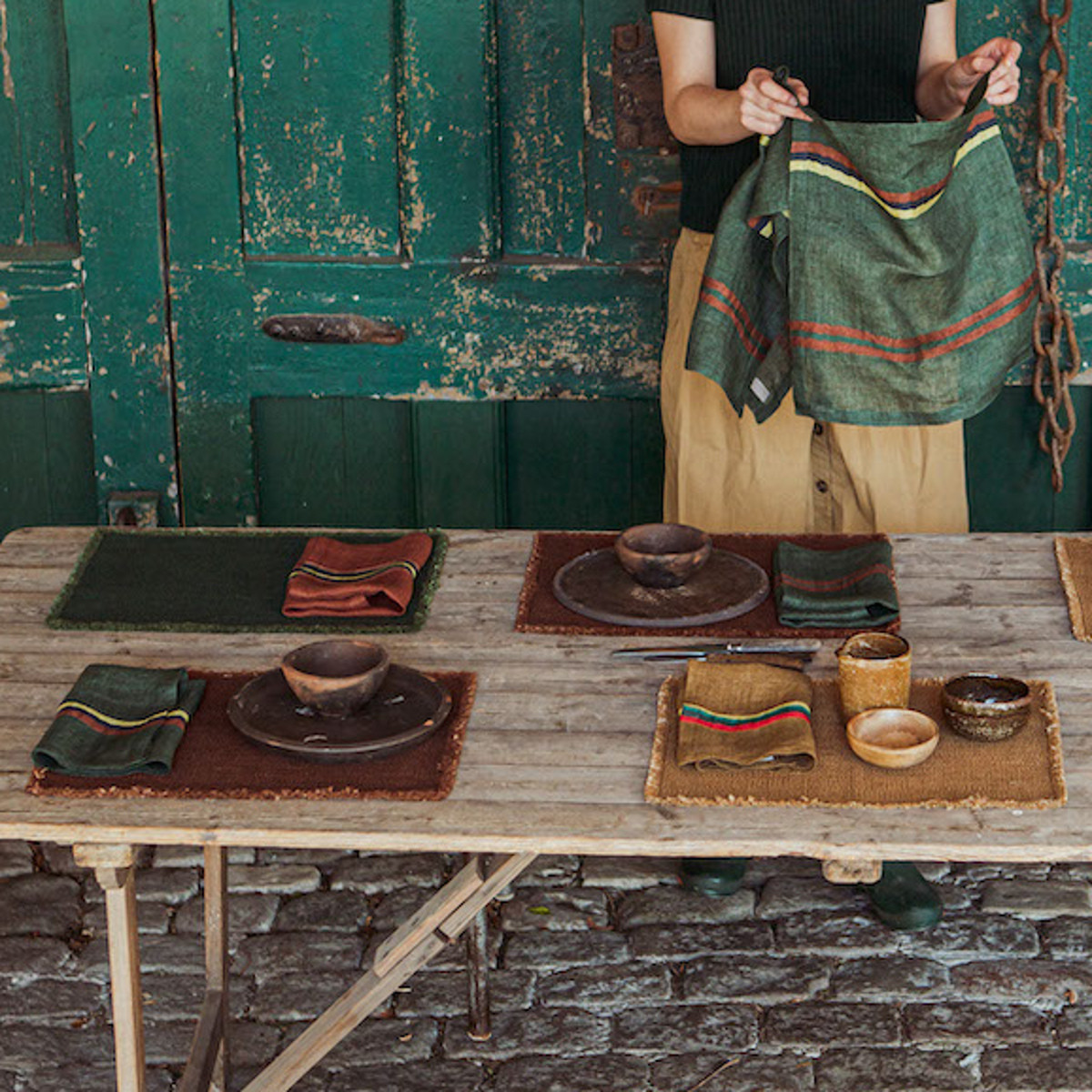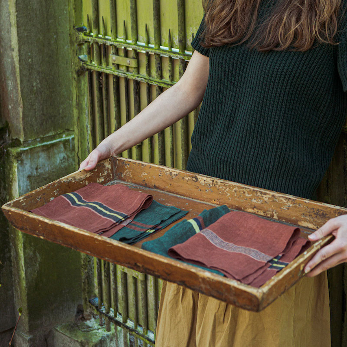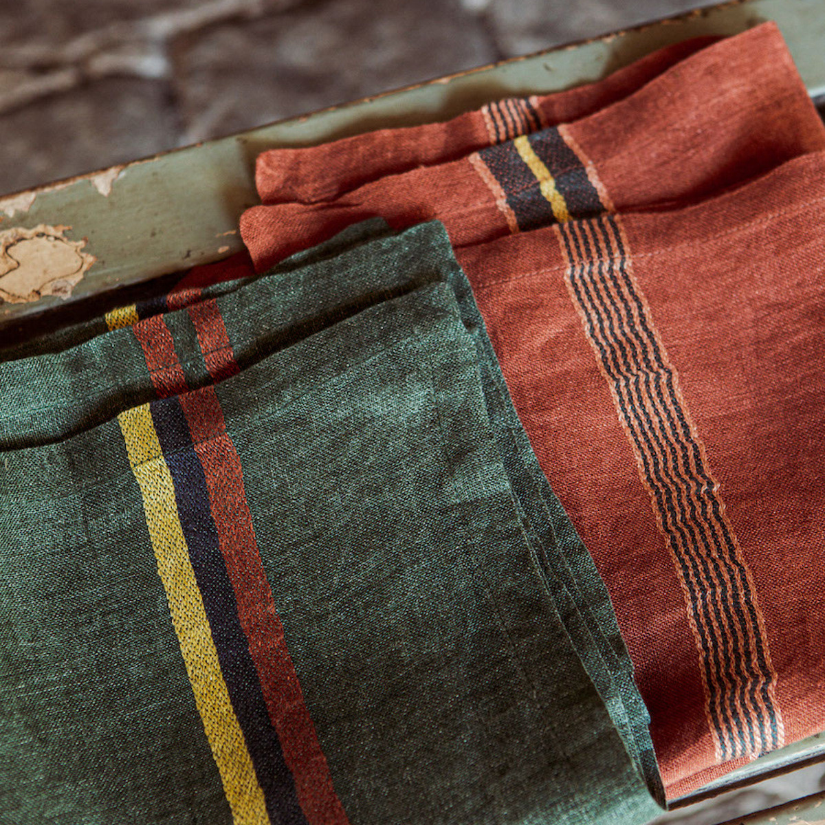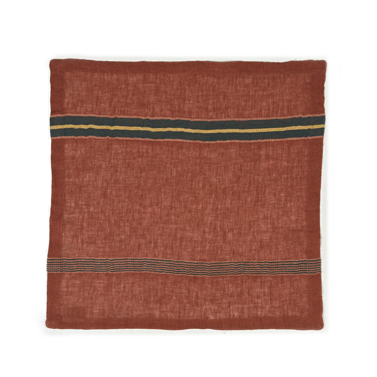 Exkluzivní lněné ubrousky Banff Stripe v barvě mahagonové s pruhy v odstínech zelené, hořčicové a starorůžové. Předeprané. O rozměru 42 x 42 cm. Ze 100% lnu té nejvyšší kvality, s hustotou 90 g/m2. Veškeré lněné ubrousky lze prát v pračce ideálně do 40°C. Používejte jemné prací prostředky. Nepoužívejte chlorové bělidlo. Pokud je to možné, sušte na šňůře, je to nejlepší pro lněné tkaniny i pro životní prostředí. Pokud používáte sušičku, sušte na střední teplotu, nepřesušujte. Žehlete s napařováním na mírně vlhké prádlo (nejlépe po vnitřní straně látky). Kolekce ubrousků se hodí ke kolekcím lněných polštářů.