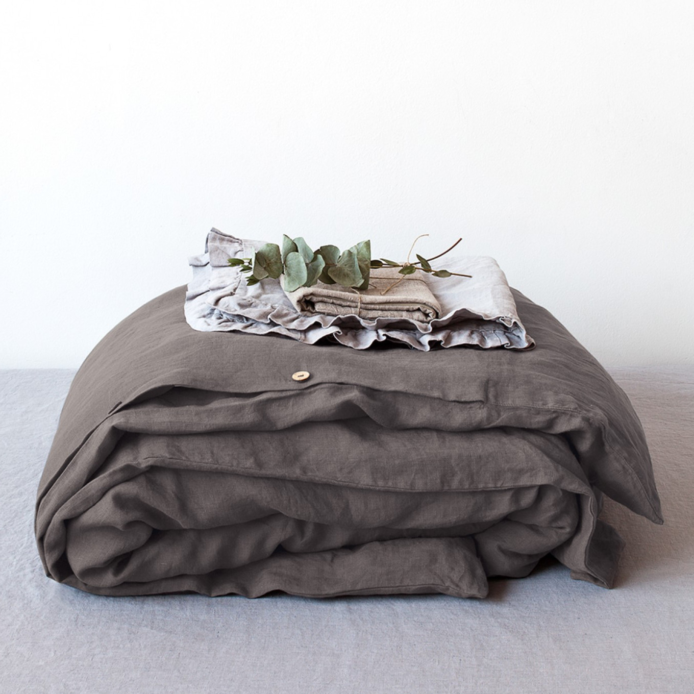 Lněný povlak na peřinu dark grey 135 x 200 cm s knoflíky z přírodní kokosové skořápky. Pro dokonalou měkkost již předepraný. Ručně vyrobený v Litvě za použití výhradně lněných vláken s certifikací OEKO-TEX® a EUROPEAN FLAX®. Má skvělé termoregulační a hypoalergenní vlastnosti a zároveň odvádí vlhkost. Využijete jej tak po celý rok. Uchvátí především všechny příznivce přírodních materiálů a čistého designu. Díky své jednoduchosti, kvalitě i odolnosti je toto krásné povlečení ideální pro všechny, kdo milují nadčasovost. Lze prát v pračce ideálně na 40°C, při větším znečištění na 60°C. Vyšší teplota by neměla být používána často. Nepoužívejte chemické bělidlo ani chemické čistící prostředky. Při prvním praní perte odděleně od ostatního prádla. Sušení v sušičce na nízkou teplotu.