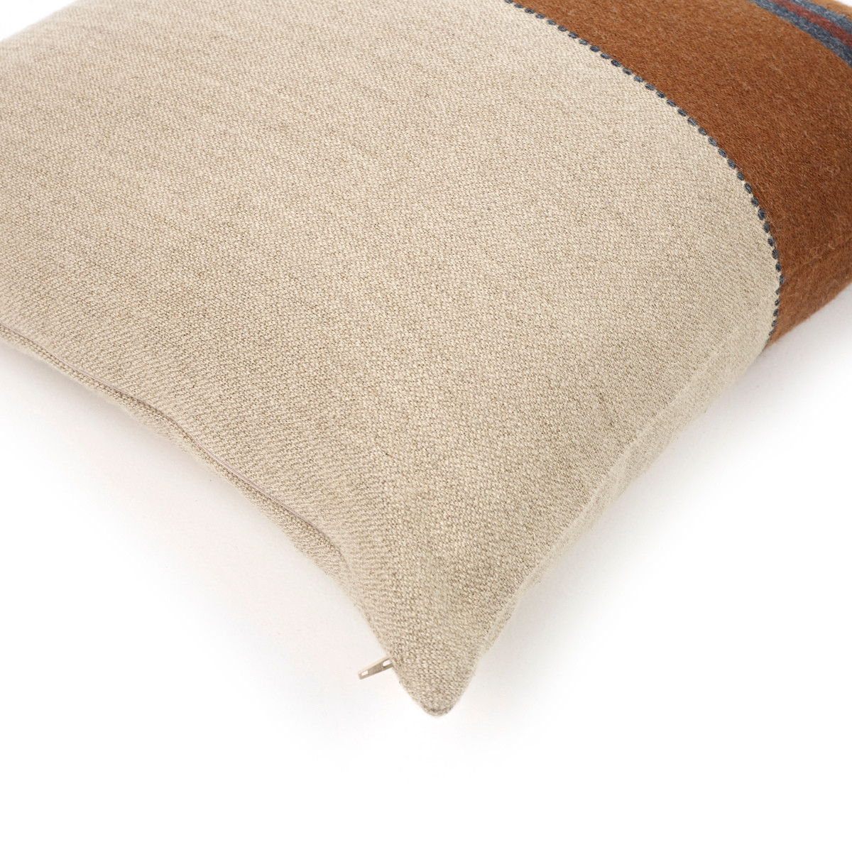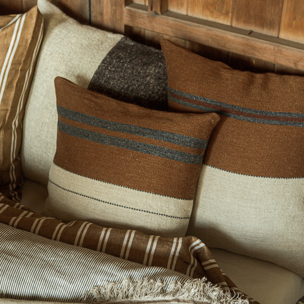 Povlak na polštář Highland Stripe leather se zapínáním na zip. O rozměru 50 x 50 cm. Složení: 70% len a 30% vlna, hustota 610 g/m2. Vyroben z unikátních lněných a vlněných přízí. Povlak lze prát nebo chemicky čistit. Perte prosím při max. teplotě 30 °C na program pro vlnu nebo ruční praní. Před praním povlak zcela rozložte a pračku nepřetěžujte. Použijte jemné prací prostředky a vyhněte se chlorovému bělidlu. Pokud je to možné, nechte uschnout na šňůře, je to nejlepší pro len i životní prostředí. Pokud se rozhodnete výrobek žehlit, pro dosažení nejlepších výsledků tak učiňte s párou na mírně vlhkém prádle (nejlépe po vnitřní straně látky).