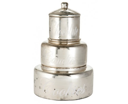 Sada tří skleněných dóz v chladivém odstínu severského stylu se stříbrným nádechem. Dózy s nápisy Chocolate, Candies a Cookies jsou skvělým doplňkem do každé kuchyně. S rozměry 23 x 23 x 37 cm.