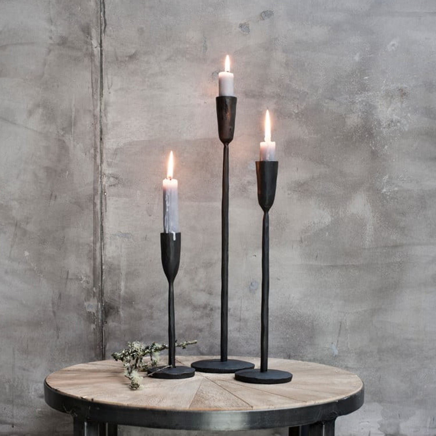 Svícen černý ručně kovaný 30 cm subtilní a elegantní bude skvělou volbou pro milovníky industriálního stylu. V černé barvě. Na klasickou svíčku.