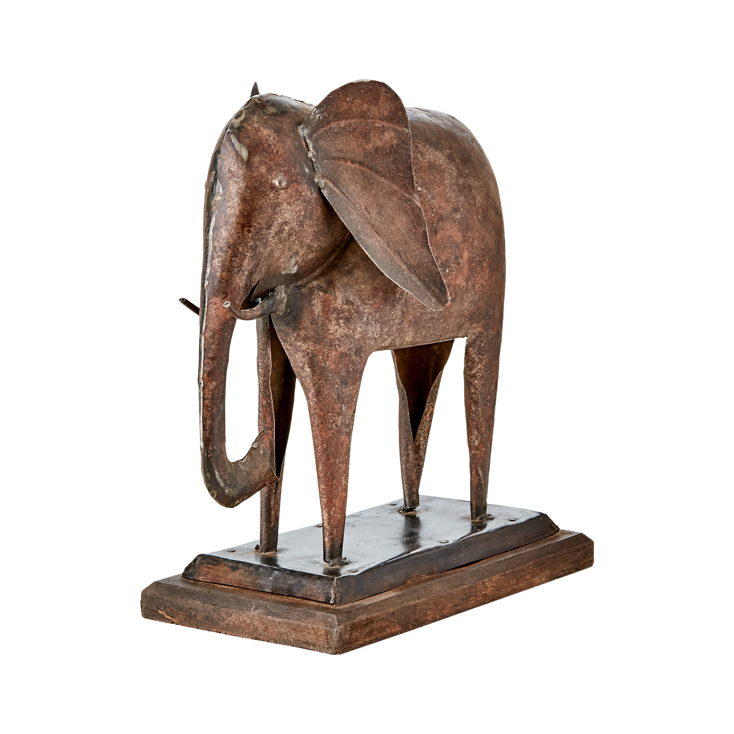 Vintage dekorace kovový slon hnědé až rezavé barvy. Ručně vyrobená replika starého díla. Na dřevěném podstavci. Výška 29 cm. Povrchová úprava je hladká a nešpiní. Krásný solitér pro milovniky vintage stylu.