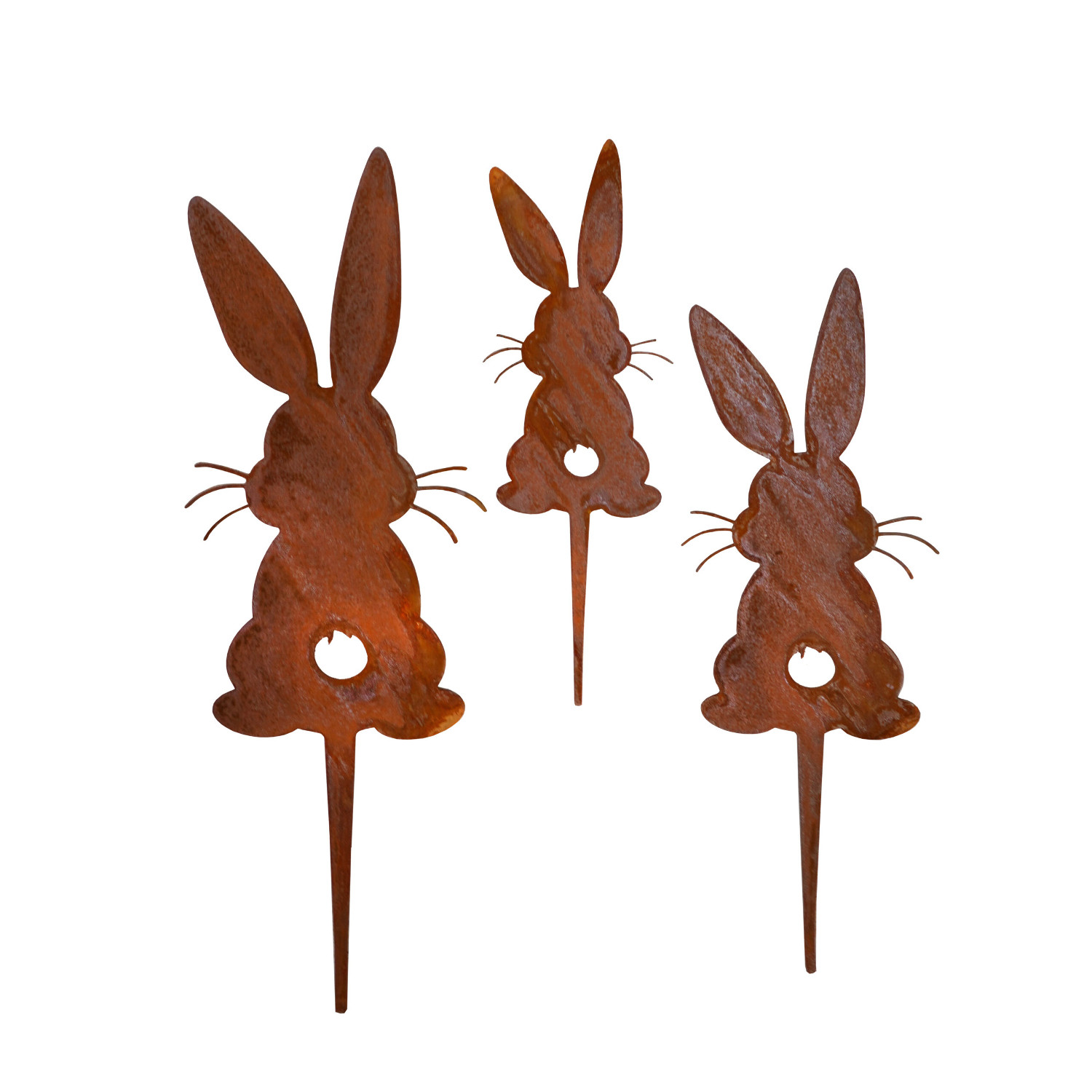 Zajíčci k zapíchnutí s rezavou patinou sada 3ks. S výškou 14 - 23 cm. Krásná velikonoční dekorace do truhlíků či květináčů. K dozdobení velikonočních dekorací a věnců.